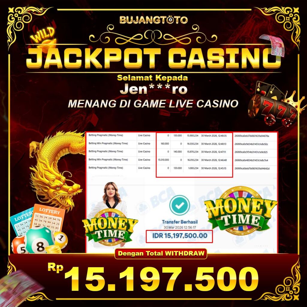 Selamat kepada User ID : Jen***ro yang berhasil meraih kemenangan besar di MONEY TIME bersama BUJANGTOTO!